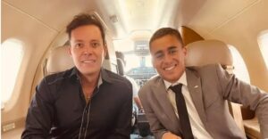 André Valadão, líder da Lagoinha, e Nikolas Ferreira em avião de Daniel Vorcaro. Foto: reprodução